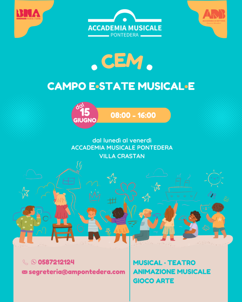 - L’iscrizione al Campo E-State Musical-e offre la possibilità di godere dello sconto del 50% per le iscrizioni ai corsi di settembre offerti dall’Accademia Musicale Pontedera.