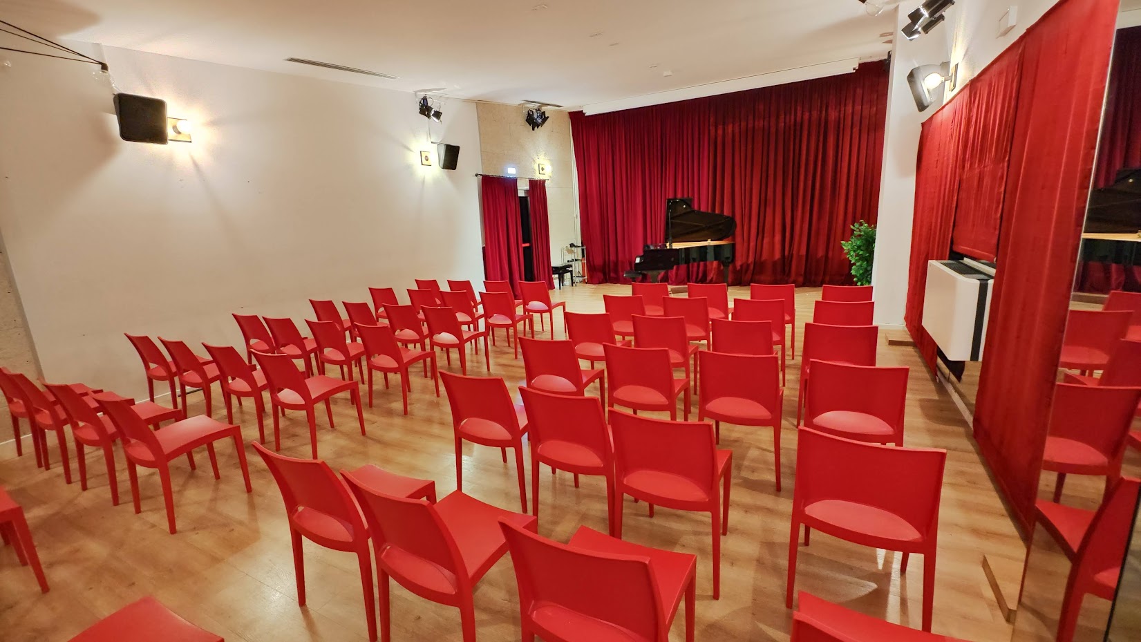 Grazie alla caparbietà e alla forza di credere a un progetto ambizioso, i lavori, che inizialmente prevedevano la realizzazione sia dell’area didattica (prevalentemente nei locali dell’ex-biblioteca del duomo) e del nuovo teatro (nell’area dell’ex-cinema), vengono stralciati in due, portando a termine, nel settembre 2021, l’area didattica, e ricavando un auditorium più piccolo, di circa 99 posti, sul palco dell’ex-cinema teatro.